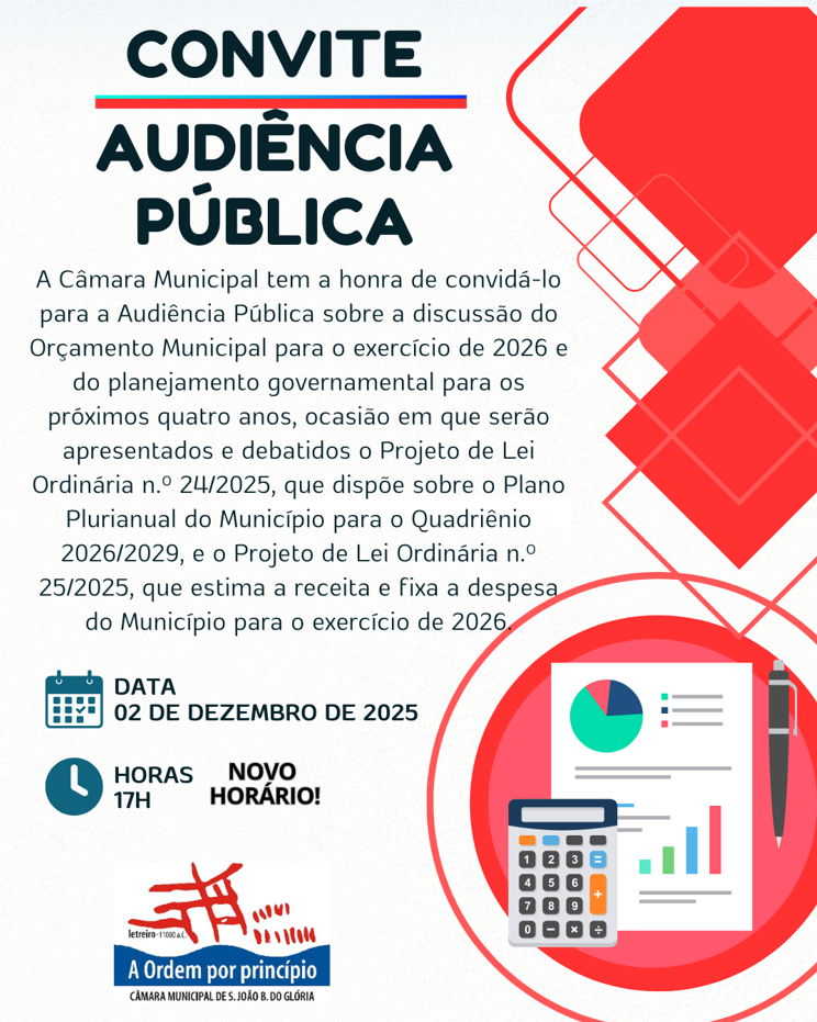 Convite para Audiência Pública sobre o Orçamento Municipal de 2026 e o Plano Plurianual 2026–2029